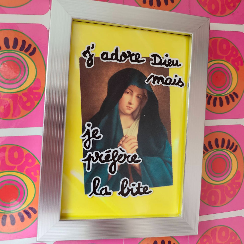 Ils ont fait la convention de Romorantin avec moi, maintenant ils cherchent un mur. Photos chinées , pimpées à la main avec une punchline dessus qui va rester dans ta tête. Chaque pièce est unique. Quand c'est parti, c'est parti.